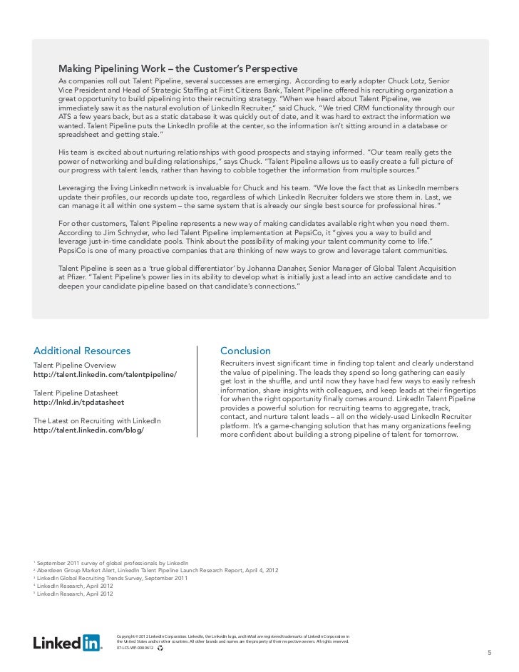 Choice for recruiting organizations to manage job applicants (i.e. “active That Talent Pipeline is built right on the LinkedIn Recruiter platform has made it all the easier for companies to adopt. li_best practices_strong_talent_pipeline_whitepaperP1-7-9-12 ... Read More
